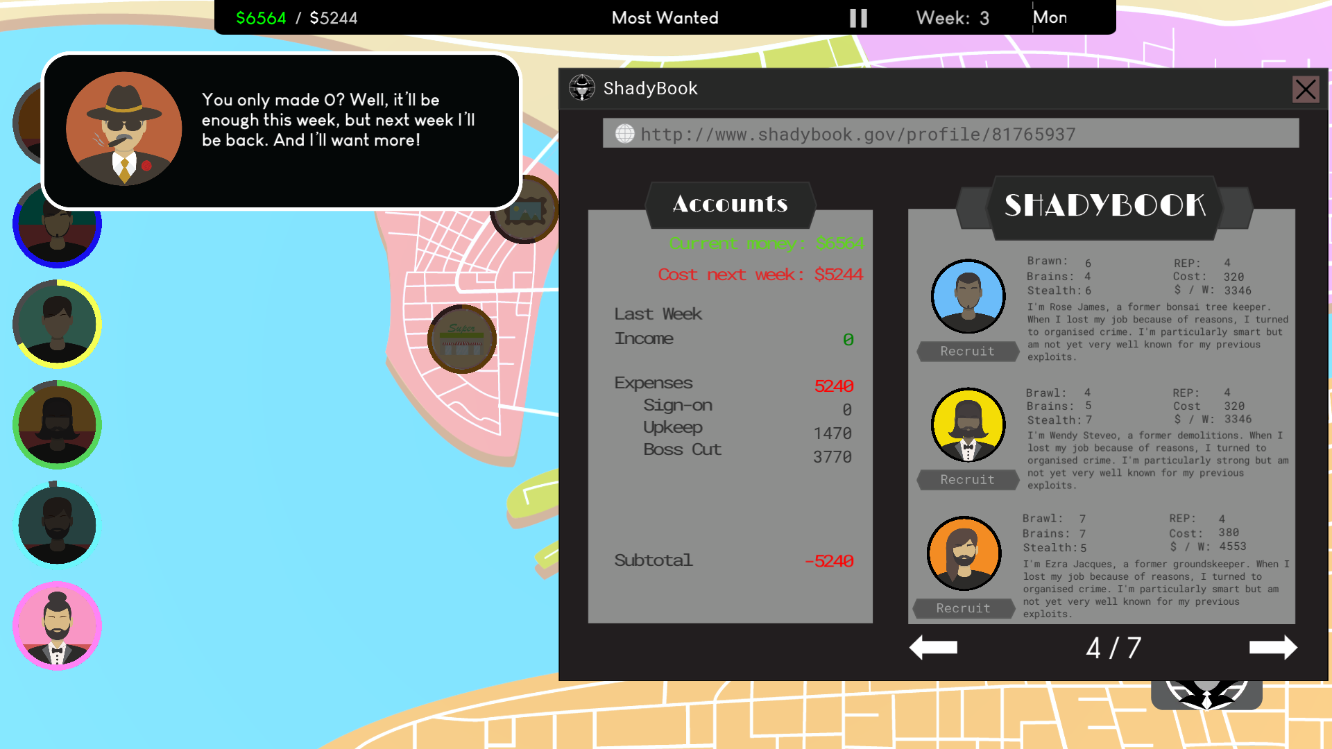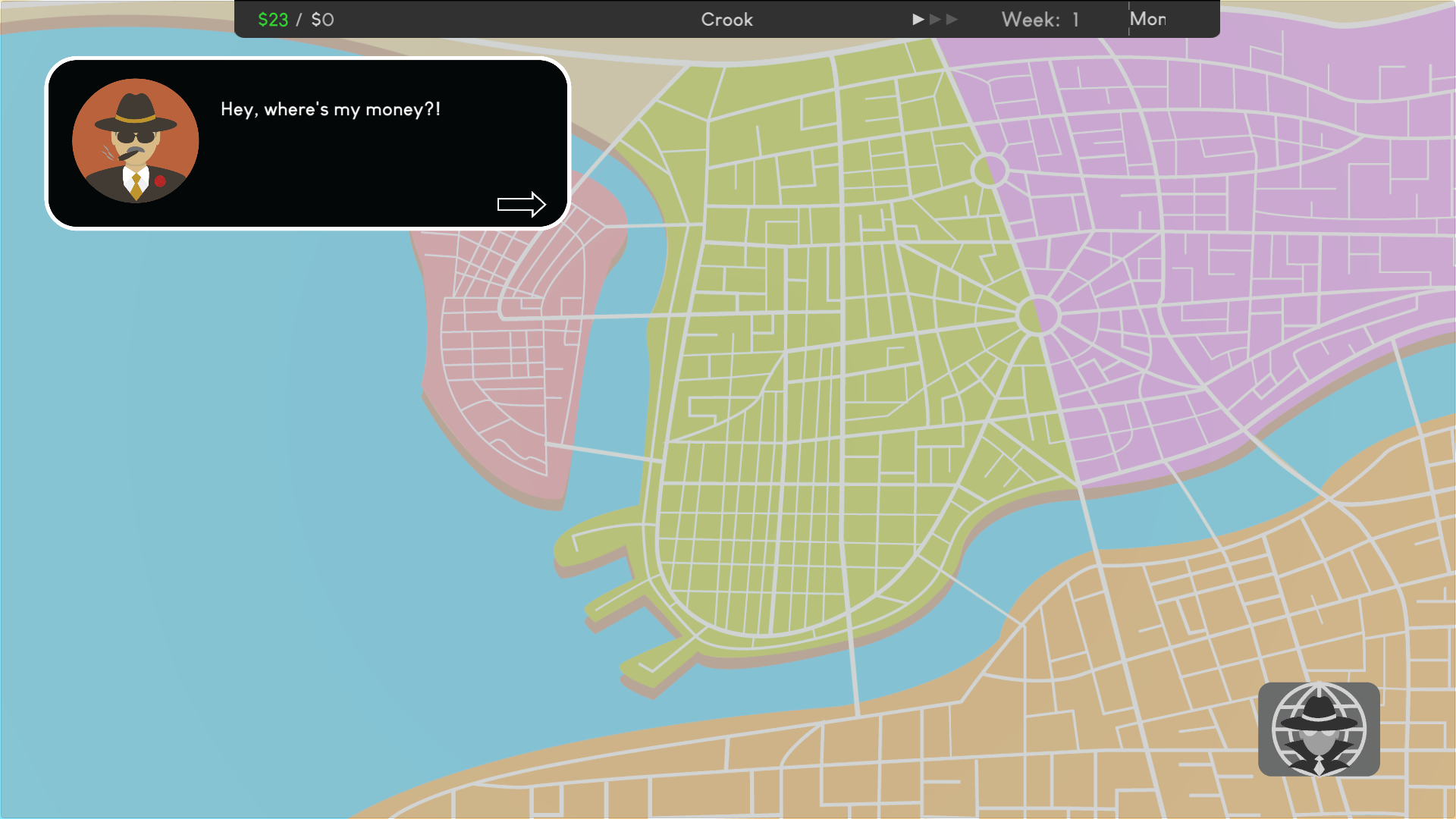 But, as you advance your crime syndicate, you might find it harder and harder to stay afloat. An angry debtor from your past wants their money back, and fast. You’ll need to keep them satisfied with weekly repayments. And, if you can’t cough up the money, be prepared for the consequences. You might just learn that, in the end, crime never pays.