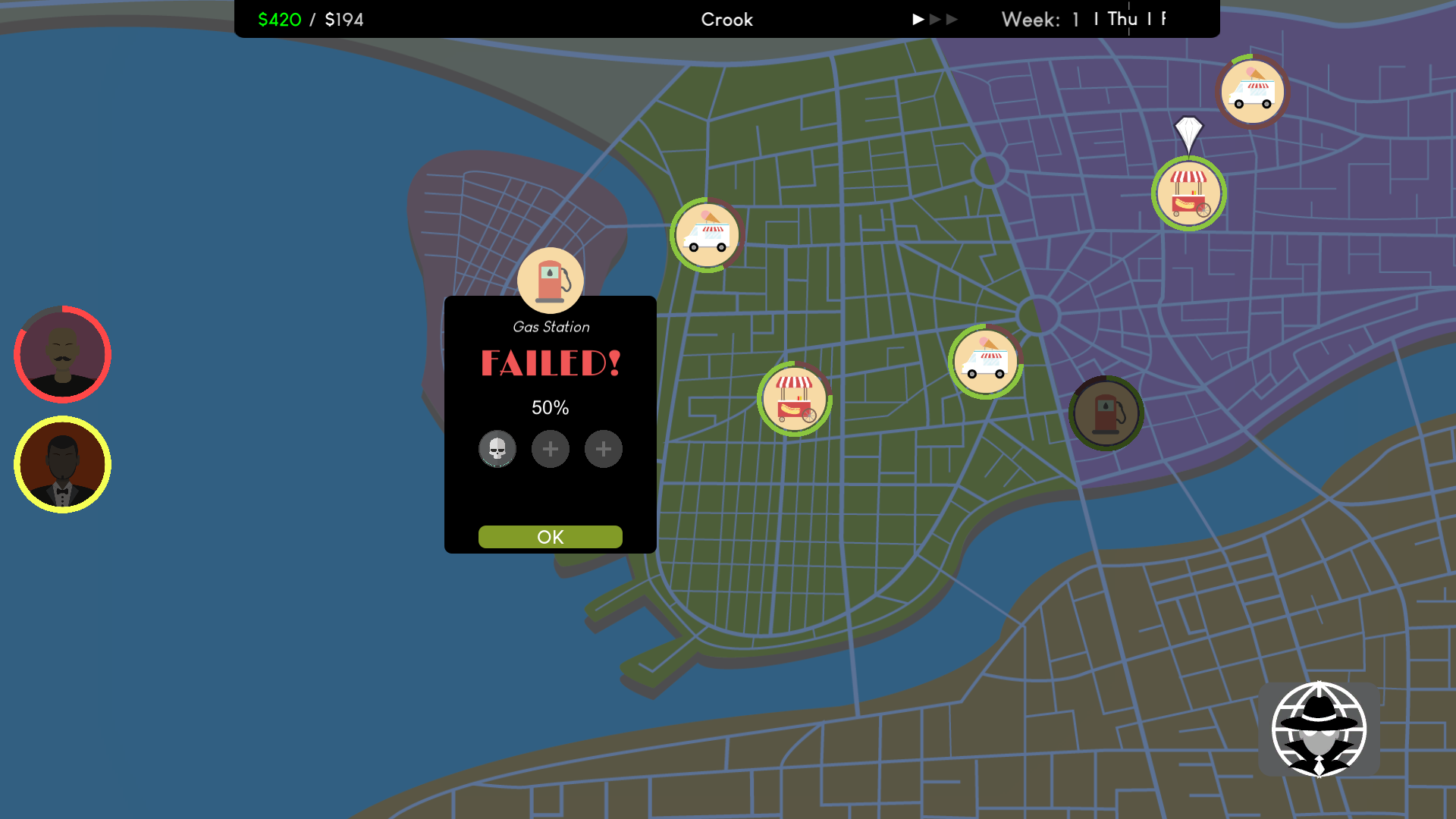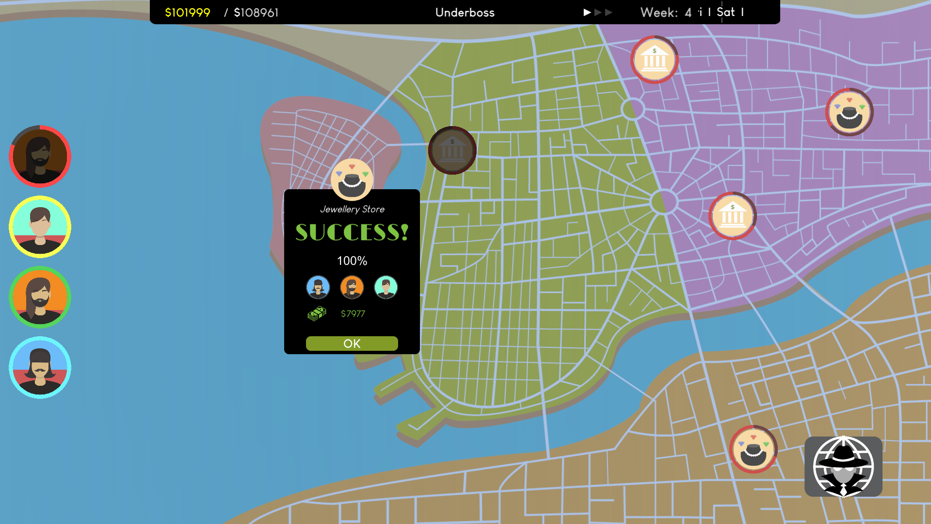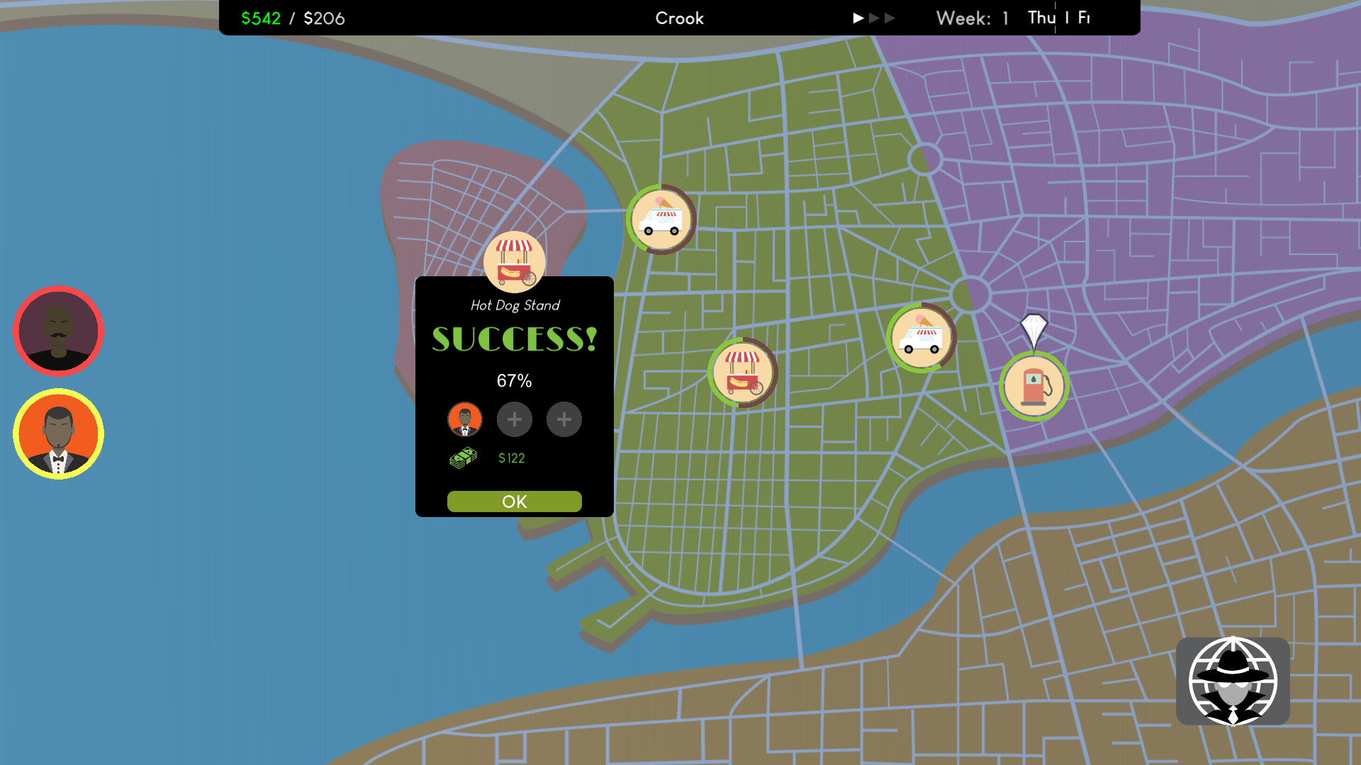 Too Many Crooks is a never-ending crime management game. Recruit a ragtag team of criminals and send them out on crimes from raiding humble hotdog stands to a full-on bank heist.